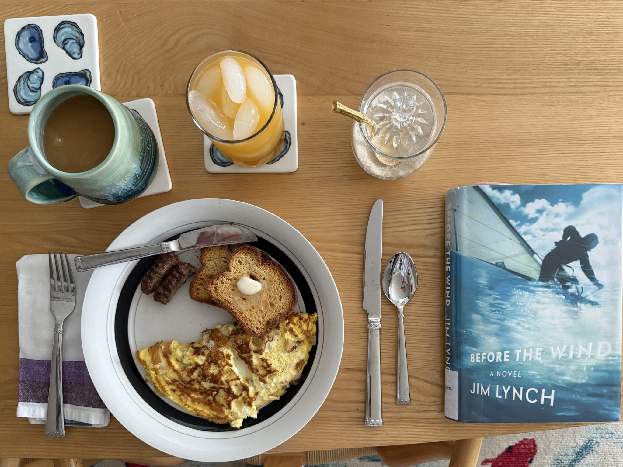 Before the Wind by Jim Lynch — They say never judge a book by its cover, but choosing a book by its cover rarely fails me. Picked up this family sailing saga at the library a few weeks ago, and I enjoyed it so much, I ordered a used copy for the ever-growing collection of books stacked all over my house. My favorite few chapters were the ones I read dozing off in the air-conditioned cabin of a sailboat during the late Saturday afternoon hours of Cape Charles Cup weekend.